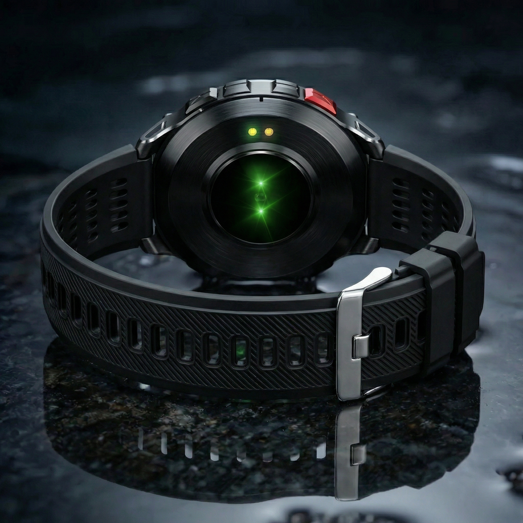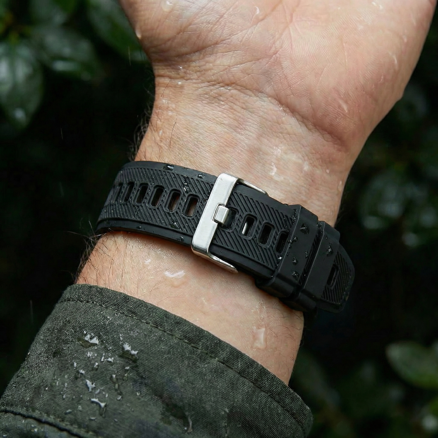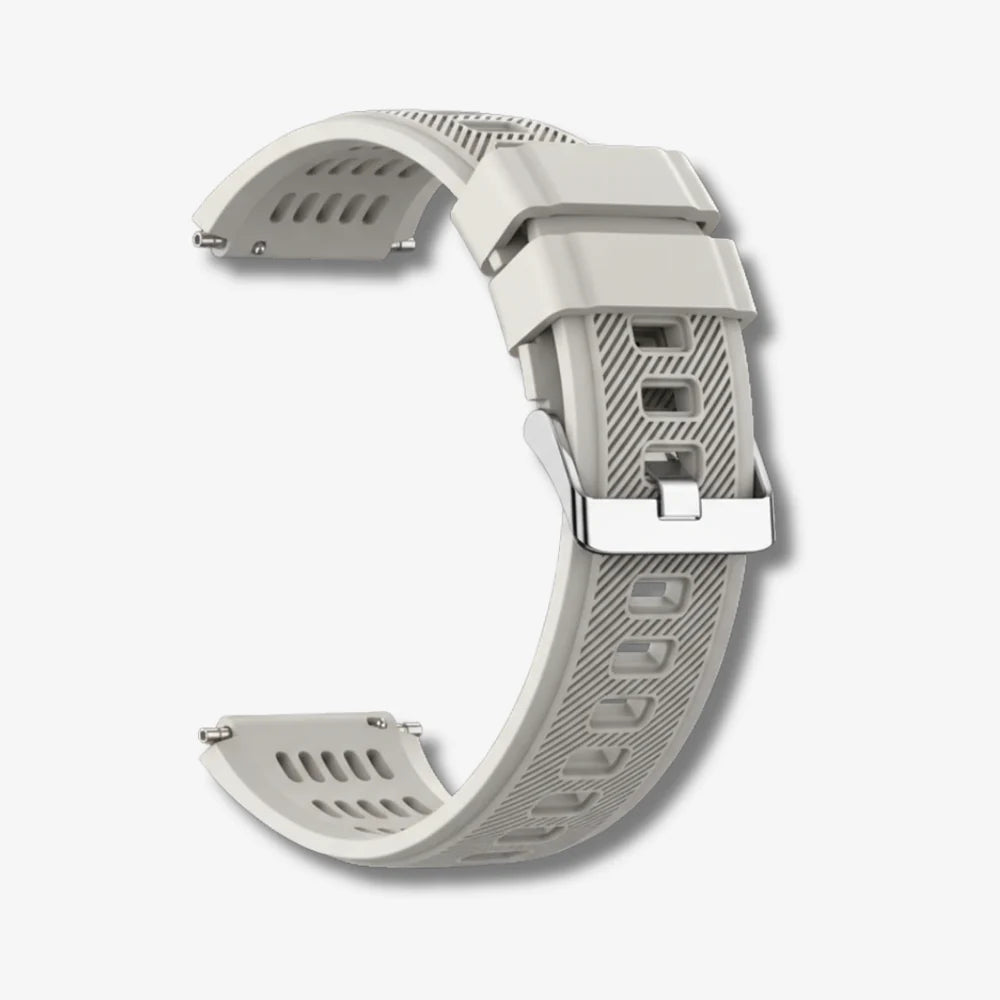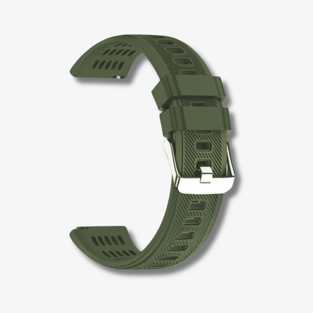 Built to endure constant motion, this strap features a reinforced silicone body with deep ventilation channels for all-day comfort. The textured surface adds grip and stability, while the solid metal buckle locks everything in place. Tough, flexible, and purpose-driven—designed for those who demand reliability from their gear.