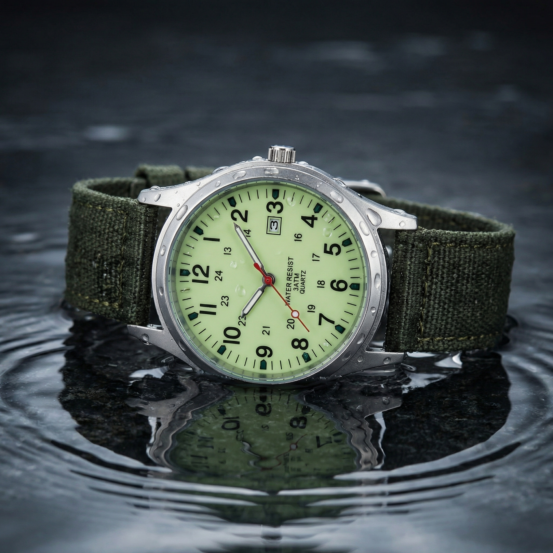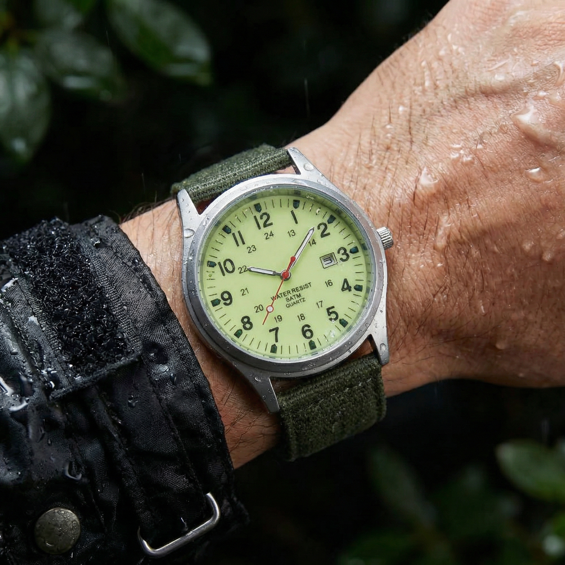 Aqua Vanguard is built to thrive in the elements. With its high-visibility luminous dial, bold field numerals, and dependable quartz movement, it delivers precision you can rely on—rain or shine. The durable case, water resistance, and rugged nylon strap make it ready for wet terrain, outdoor pursuits, and everyday wear. Tough, functional, and timeless, this is performance designed to go wherever you do.